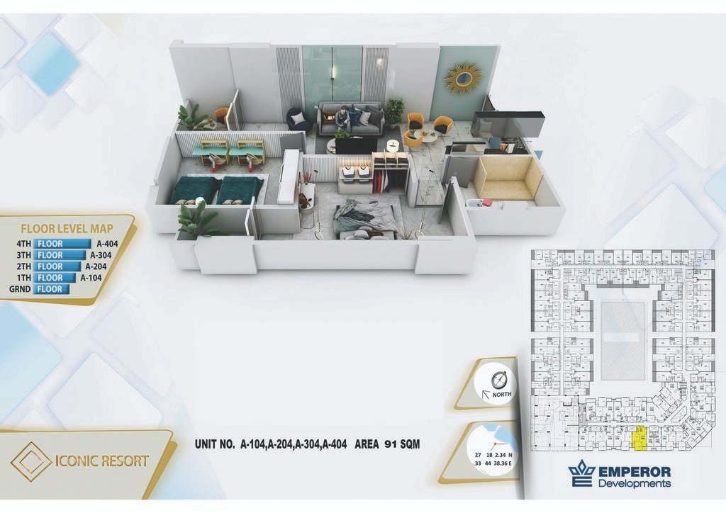 Two Bedroom in Iconic Resort by Emperor Developments -the apartment size 93m²