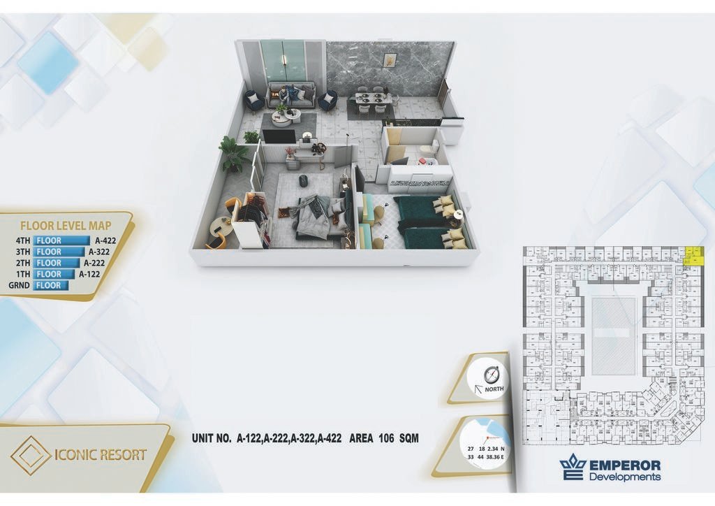 Two Bedroom in Iconic Resort by Emperor Developments -the apartment size 106 m²