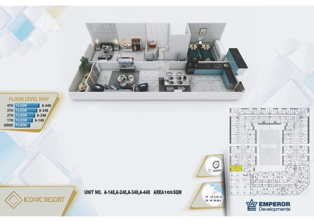 Two Bedroom in Iconic Resort by Emperor Developments -the apartment size 105 m²
