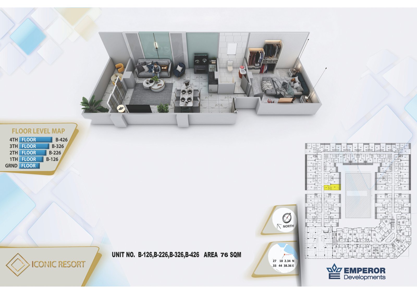 Two Bedroom in Iconic Resort by Emperor Developments -the apartment size 84 m²