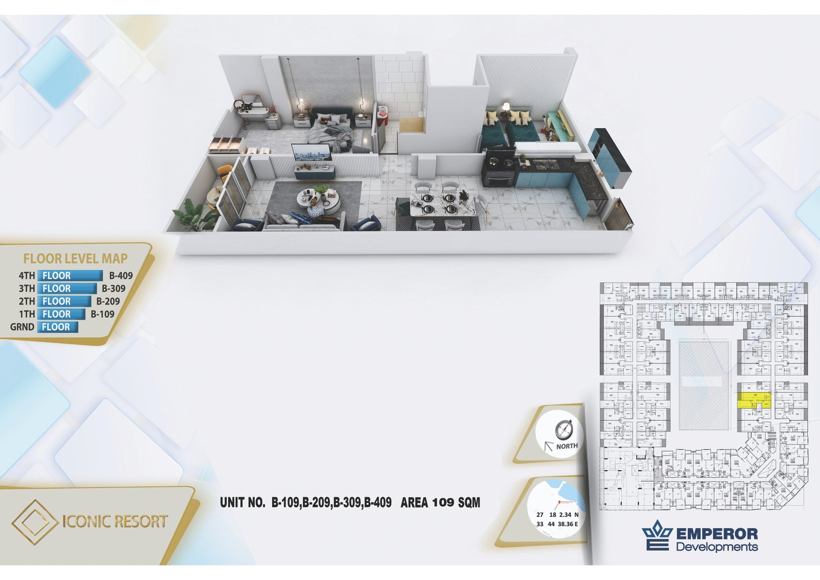 Two bedroom in Iconic Resort by Emperor Developments -the apartment size 109m²