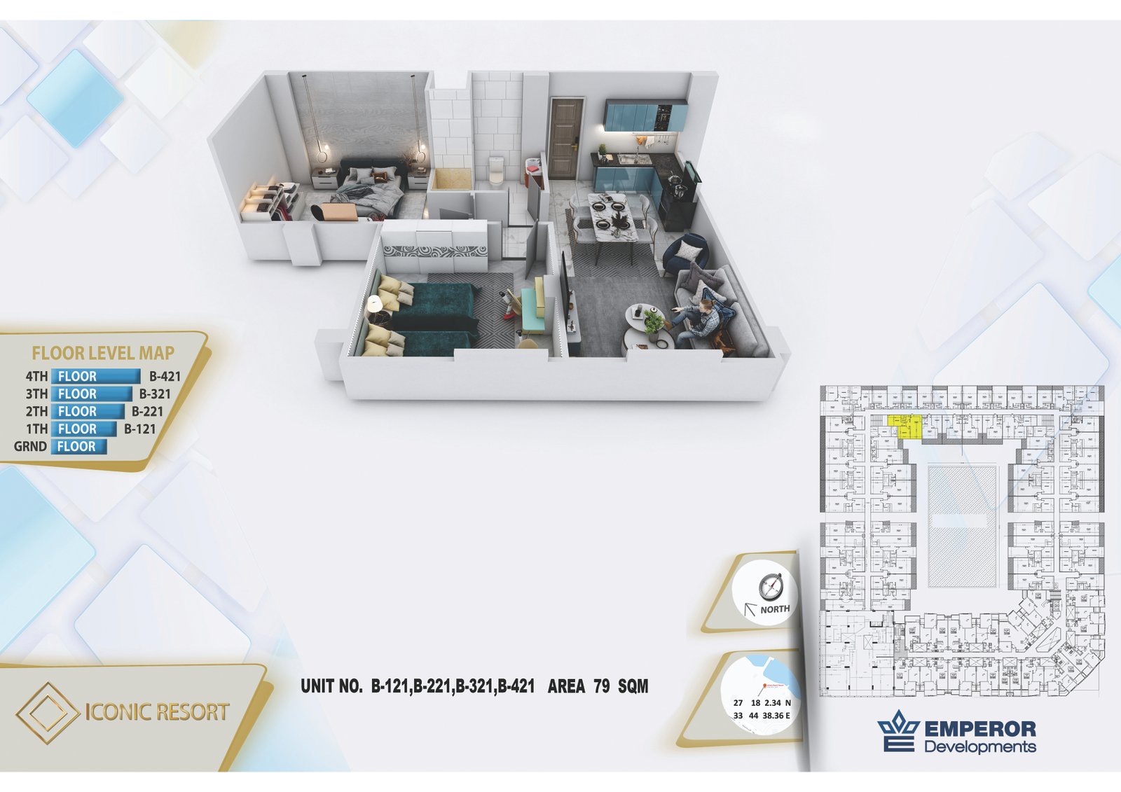 Two Bedroom in Iconic Resort by Emperor Developments -the apartment size 79 m²